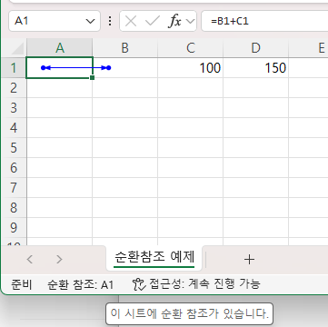 예시: 순환참조: B2 → 이 셀을 클릭하면 해당 셀로 바로 이동할 수 있습니다.