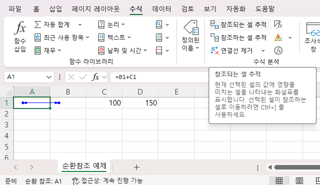 📌 이 기능을 통해 셀 간 참조 흐름을 시각적으로 분석할 수 있어 간접 순환참조도 파악하는 데 유용합니다.