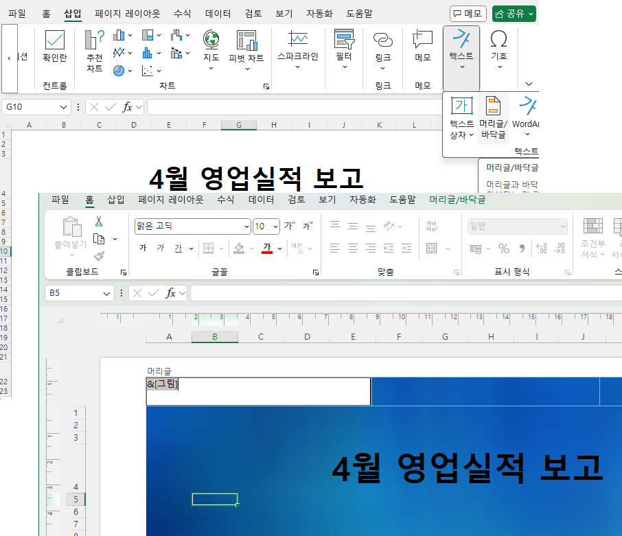 3. 머리글/바닥글에 이미지 넣어 배경처럼 활용하기