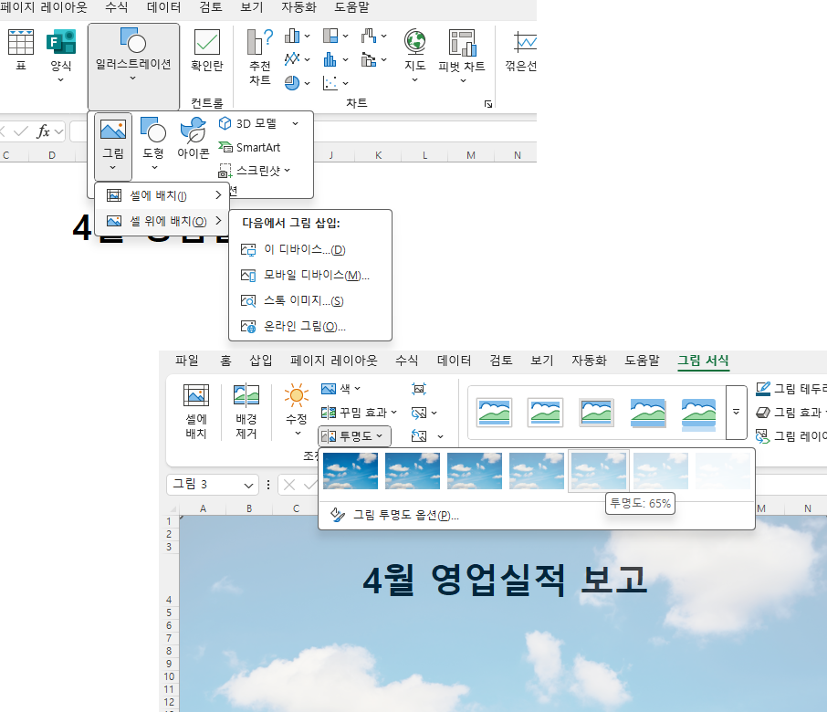 2. 셀 뒤에 이미지 삽입 및 투명도 조절